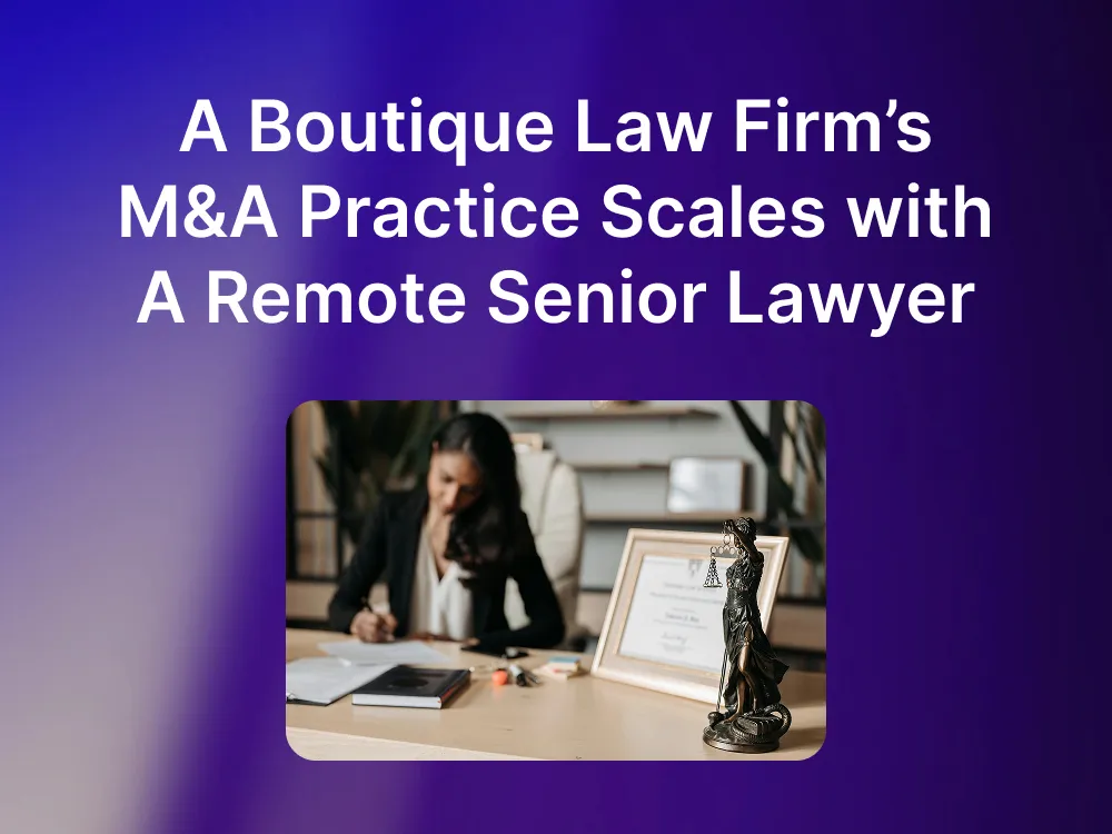 A boutique firm with offices in Melbourne and New York hired a senior M&A lawyer remotely through Teams Squared to support their expansion. Starting at 20 hours per week, the candidate quickly scaled to full-time, bringing global experience, cost-efficiency, and deep expertise to help the firm manage complex deals and grow their international practice.